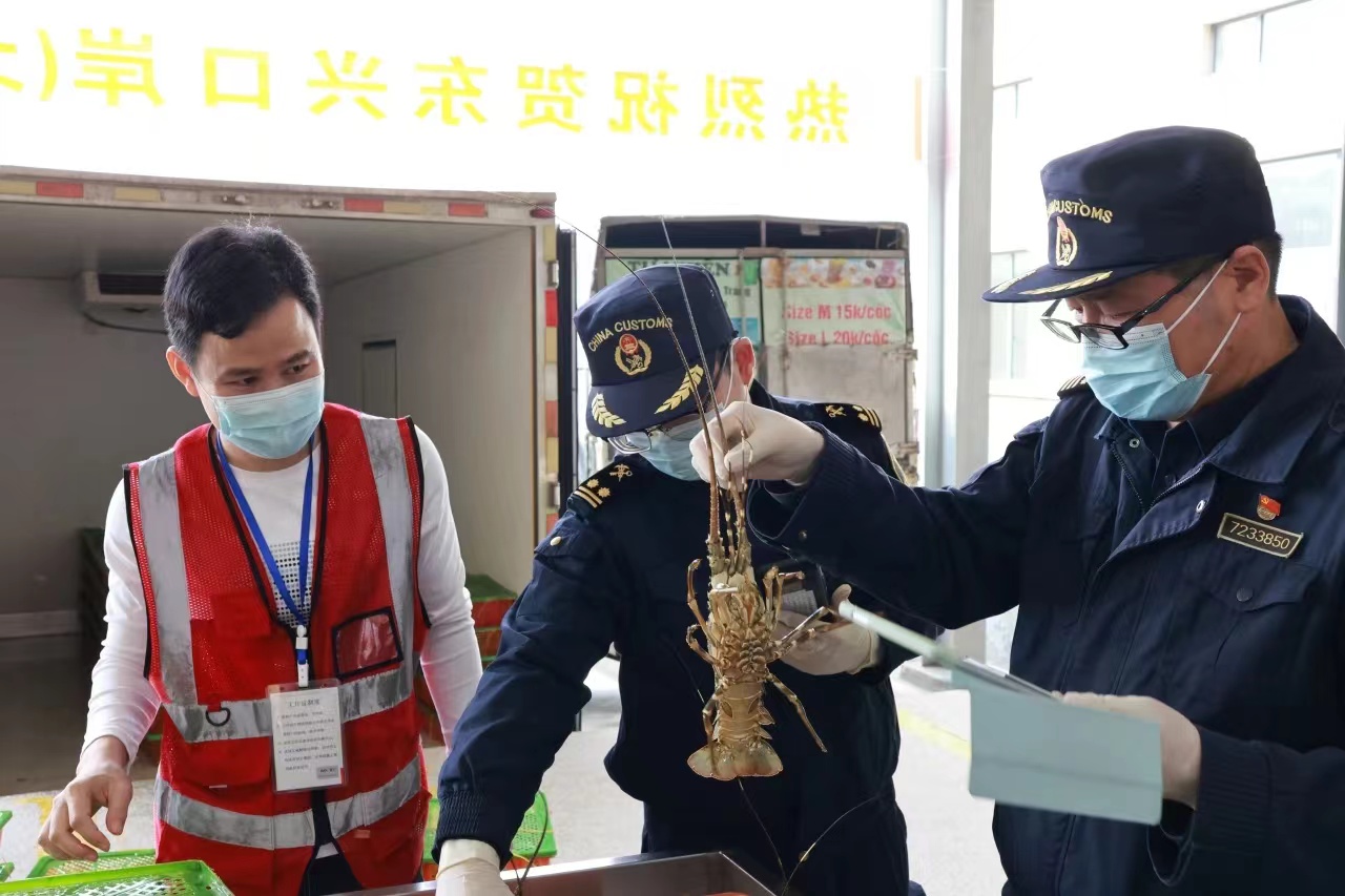 此次进境通关的龙虾,是2023年底东兴公路口岸(北仑河二桥)食用水生动物、冰鲜水产品、粮食等3个指定监管场地顺利获批后首批进境通关的食用水生动物。